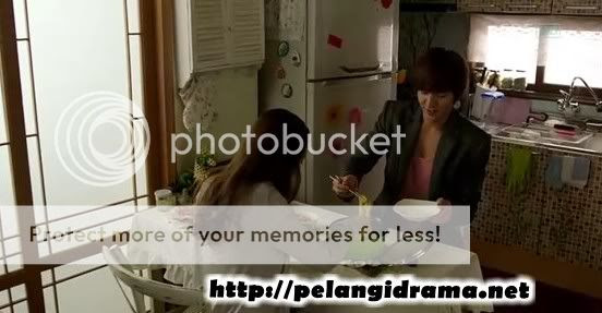 Yoon Sung terdiam dan memandang Na Na yang sedang makan tapi ketika Na Na memandang Yoon Sung, Yoon Sung salah tingkah dan melanjutkan makannya juga.